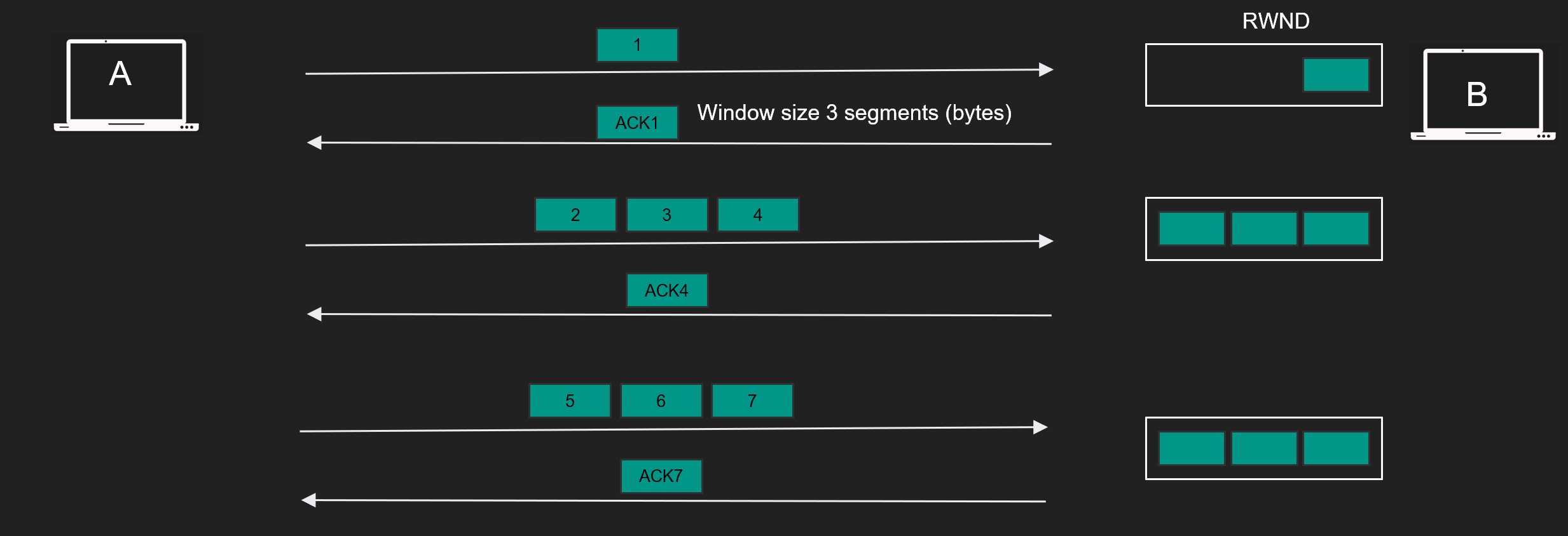 예를 들어, 송신 윈도우가 5라고 가정했을 때, 송신자는 최대 5개의 패킷을 연속적으로 보낼 수 있습니다. 수신자가 첫 번째 패킷에 대한 ACK를 보내면 윈도우는 하나씩 슬라이딩되어 송신자는 새로운 패킷을 전송할 수 있게 됩니다.