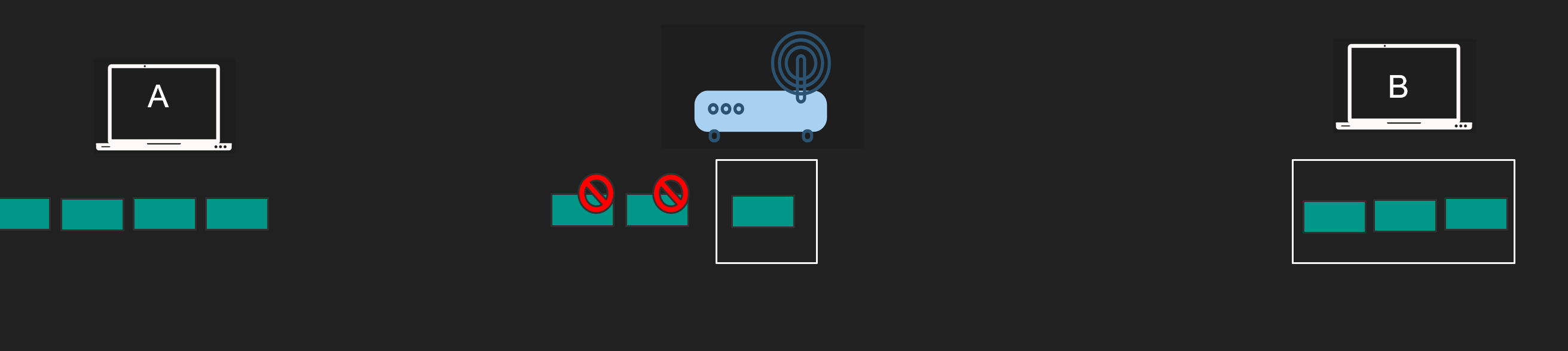 그런데 A->B로 데이터를 보내주는 중간에 있는 라우터가 1개밖에 처리를 못하면 나머지 패킷들이 drop되게 됩니다.